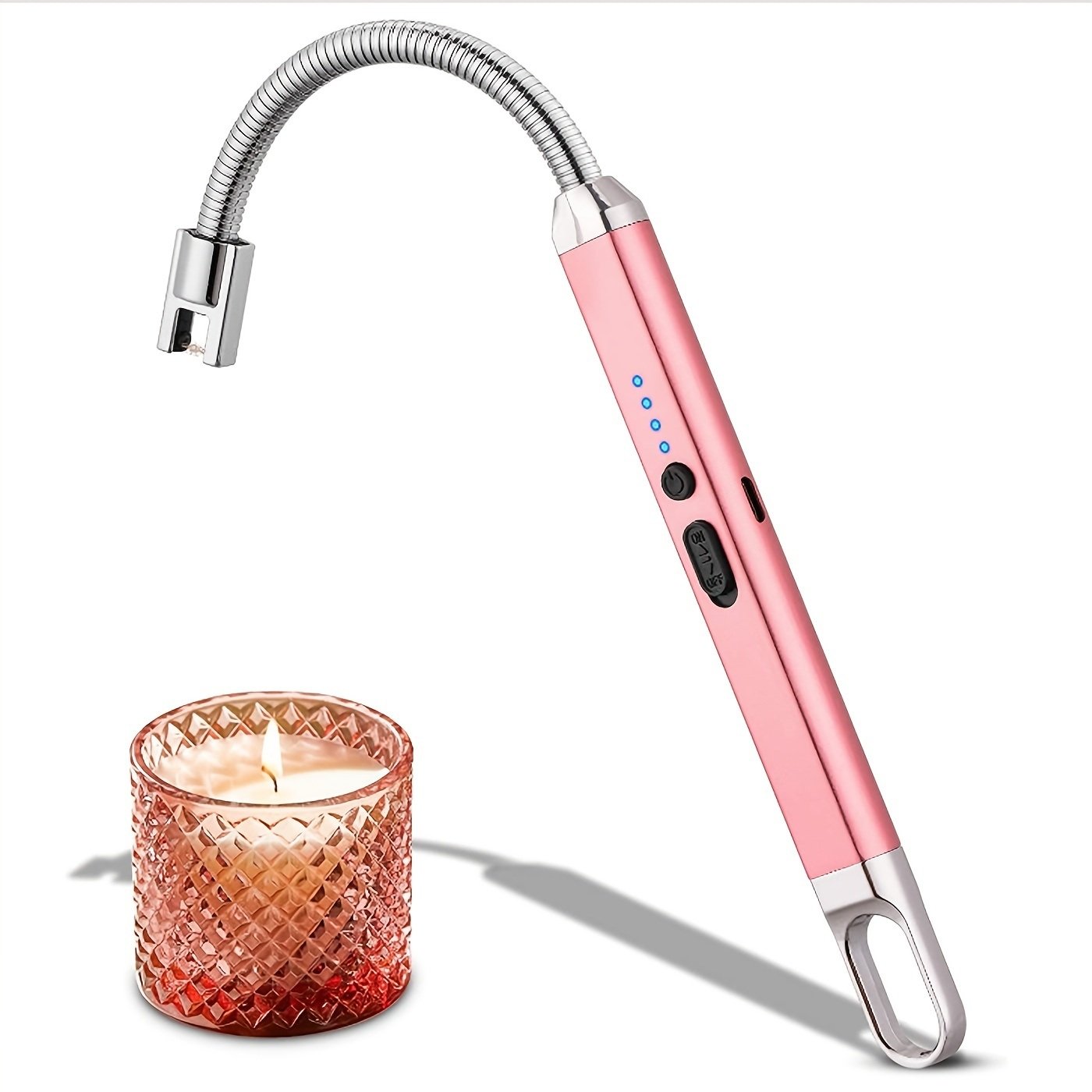 1pc Electric Candle Lighter; Rechargeable Safety Lighter With LED Indicator For Camping BBQ (Rose Golden) 11.8inch