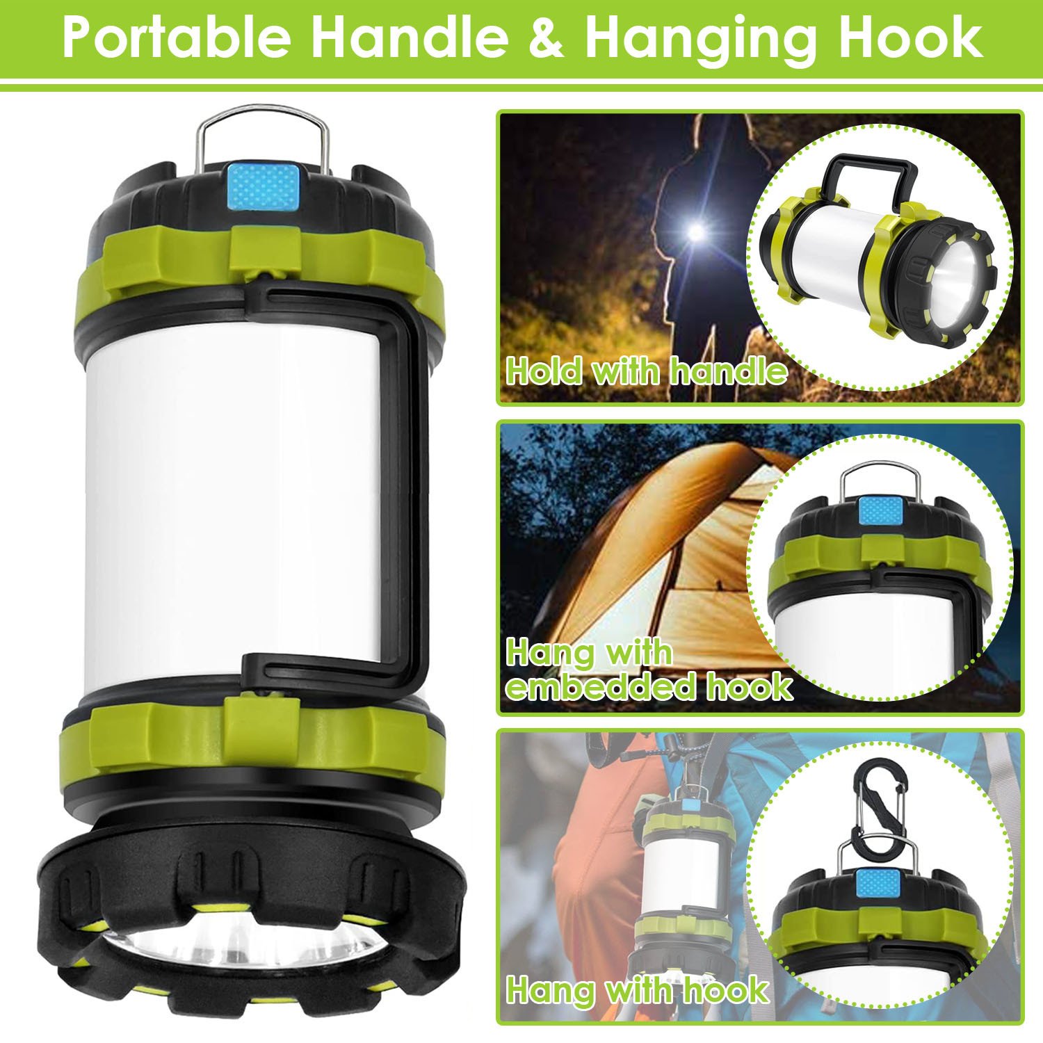 *Portable & Hanging*:The two-way hanging hook allows you to hang it both indoors and outdoors. You can also place it on the desktop. Moreover; the portable side handle helps increase grip on the lamp under flashlight mode; ideal for outdoor activities like camping; hiking; hunting; walking dogs; and so on.