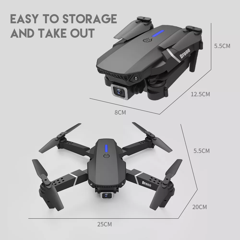 Function: Up/down, Forward/backward, Turn left/right, Sideward flight, 3-level flight speed, LED Light, Headless Mode, One Key Automatic Return, Altitude Hold Mode, WiFi FPV, Trajectory Flight, Camera/Video