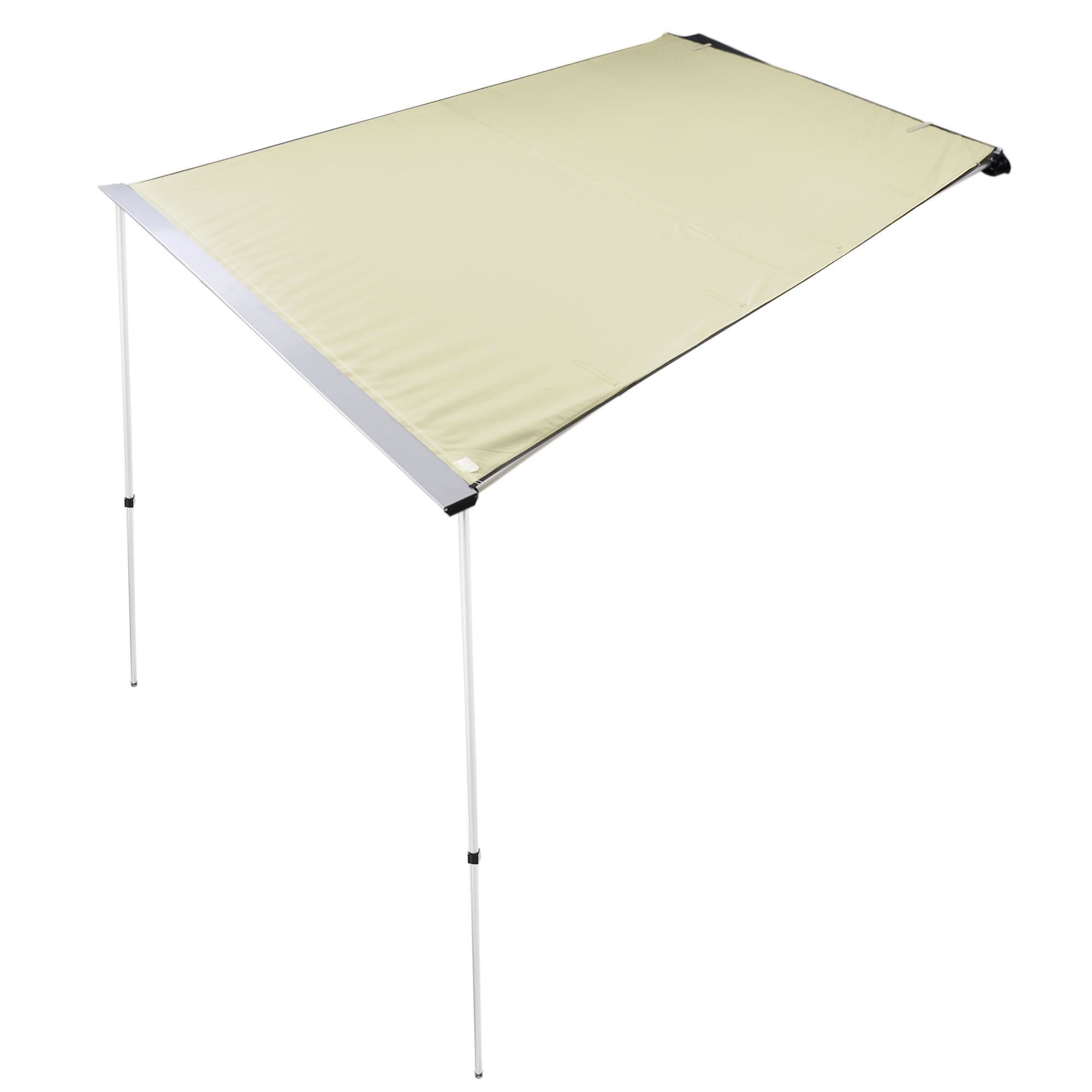 - Easy Installation - Features telescoping poles with twist-lock design to quickly extend the poles; just mount the brackets on the car roof; stretch out the awning fabric from the awning frame and extend the poles for a quick setup; height adjustable standing poles to fit different cars