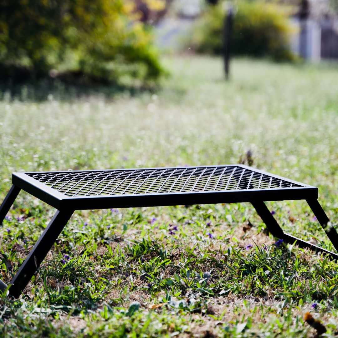 Outdoor Equipment Heavy-Duty Camp Grill:Grills over an open flameMetal surface with rugged iron frameExpandable design makes it easy to cook for the whole familyFolds up easily for storage and transportExcellent addition to your arsenal of camping equipment