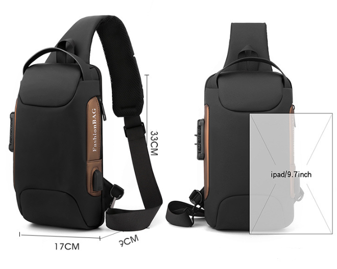 Home > Leather Film Men's USB Charging Single Shoulder Chest Bag