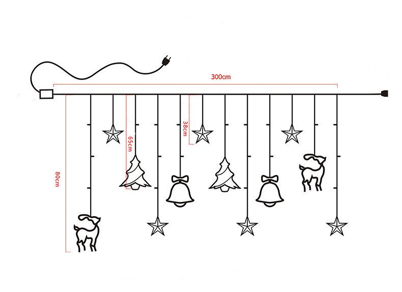 This is a led Christmas elk curtain light ice strip light holiday lights red bedroom room window decorative light string.The shell material of this decorative lamp string is acrylic; the color temperature is 3500k; the control mode is manual; and the power supply mode is plug-in; There are two colors - warm white and color; as well as flat and high and low; you can choose according to your own needs.Note: There is a white clasp on the main line of the curtain lamp. This clasp cannot be cut off; it will make the lamp wire loose.This decorative light string can be used in bedroom; party; restaurant; bar; banquet; window and other scenes.