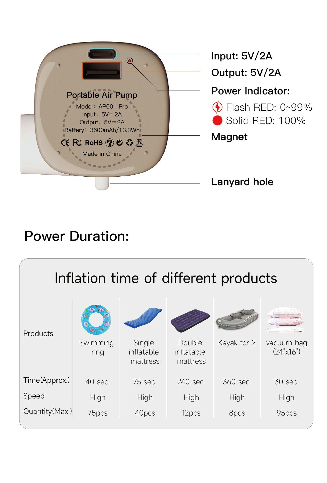 1.Inflatable pump portable
