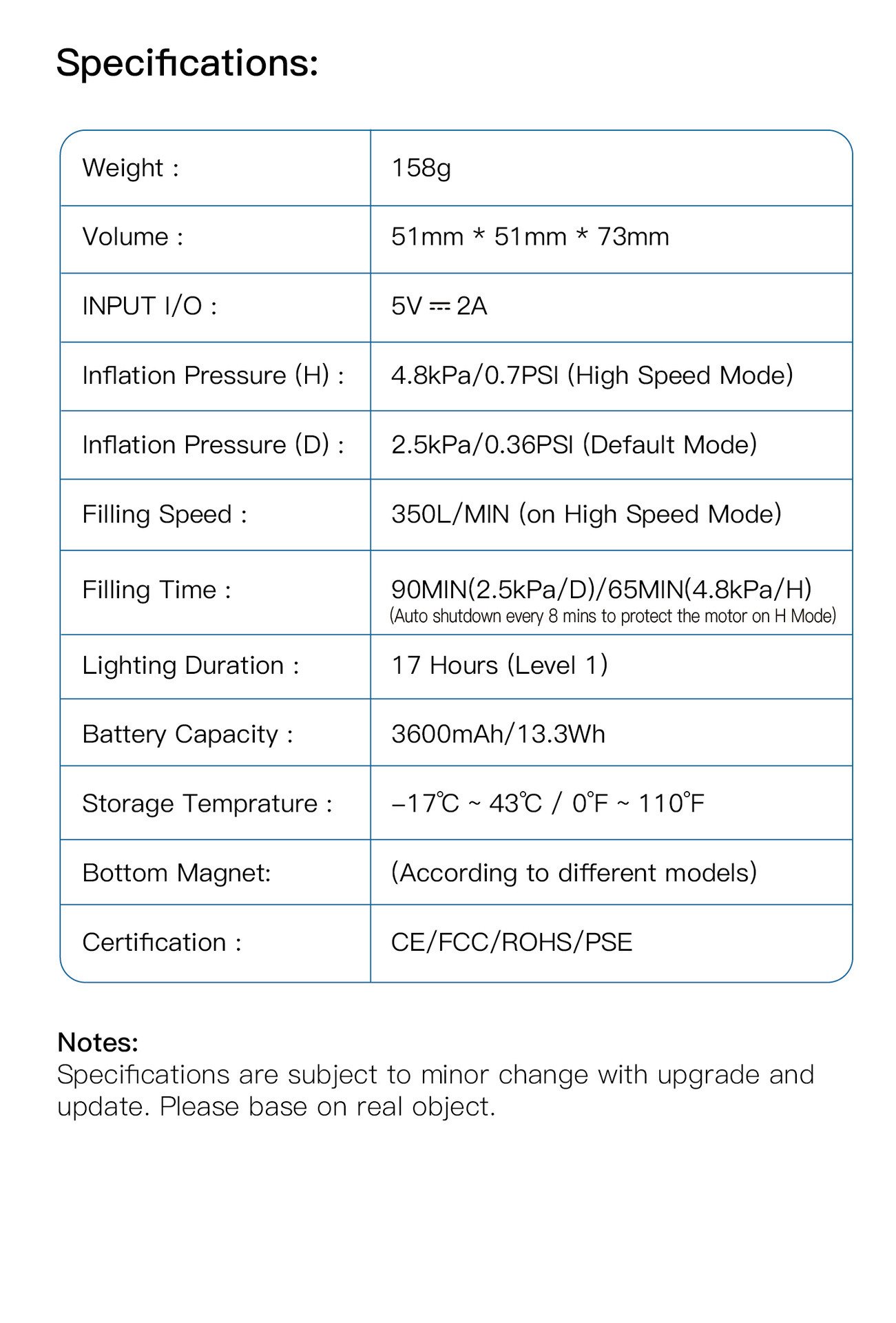 Inflation: low-speed gear / high-speed gear Pumping: low-speed gear / high-speed gear