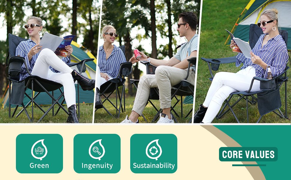A camping lawn chair that is built for anywhere: Use it as a camping chair, folding chair, lawn chair, travel chair, beach chair and more. Suitable for outdoor adventures, tailgating, fishing, backpacking, beach, picnic, sport games, car travelling, or just put it in the backyard, cabin, balcony, patio lawn parties. The SunnyFeel camping chair is an essential to add to your camping accessories.