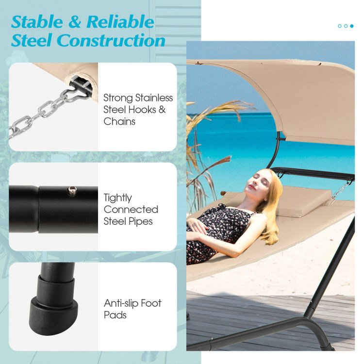 Patio Hanging Chaise Lounge Chair with Canopy Cushion Pillow and Storage Bag
