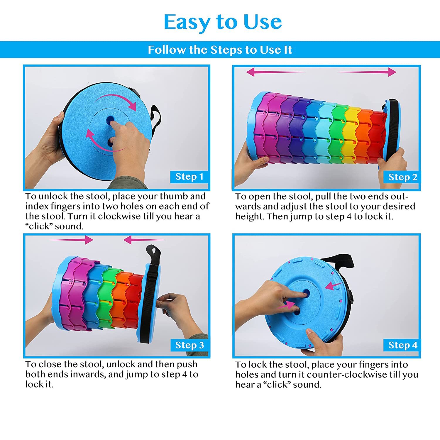 4.Size: The stretched size is 45*25cm*25cm, and the folded size is 25cm*6cm. Small size and space saving, each package is equipped with star pattern storage and each telescopic stool with a shoulder strap .So it is easy to carry, beautiful and practical to use.