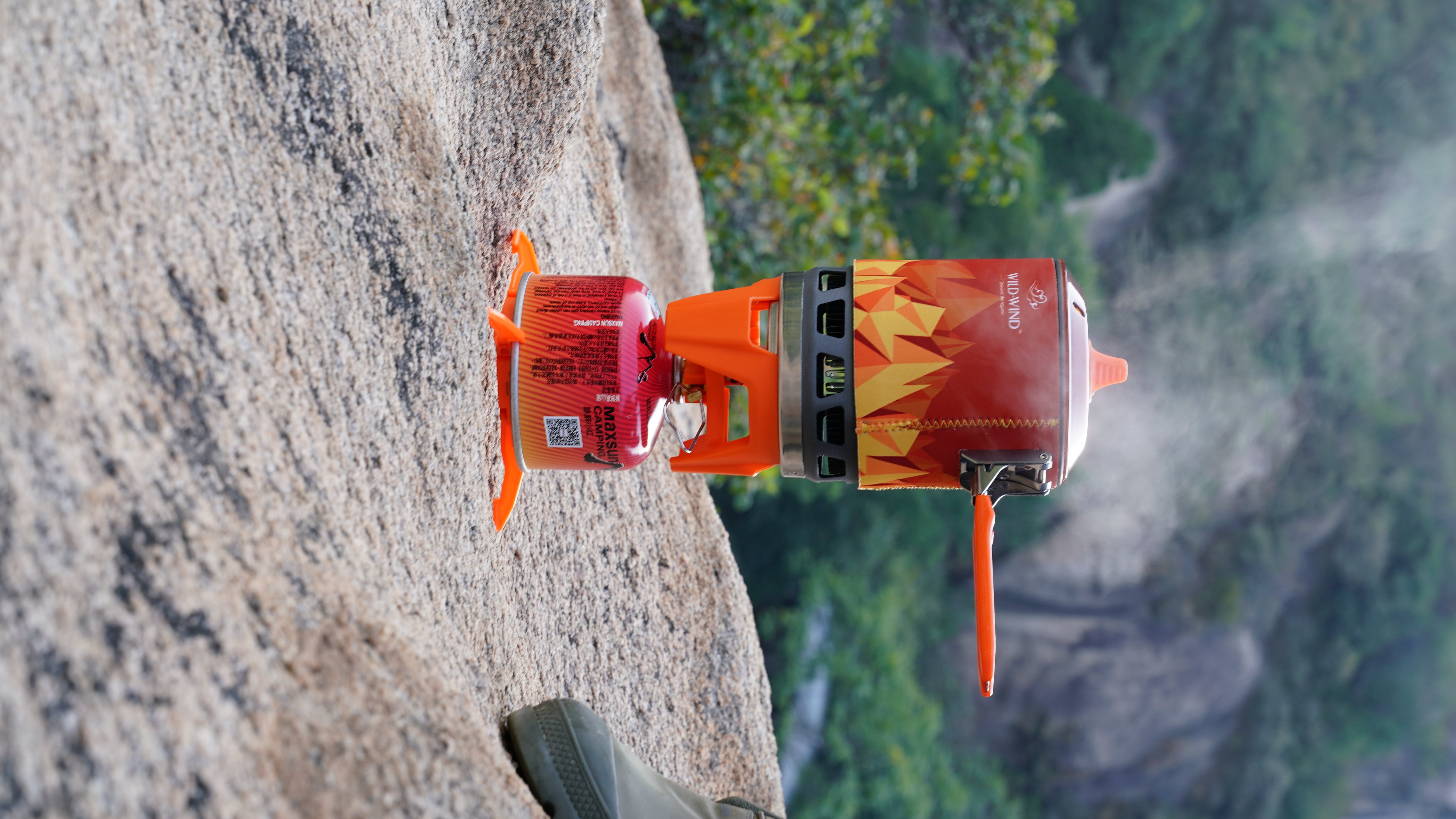 [Compact design for backpacking ]WILD-WIND X3 cooking system can pack stove base; pan support; fuel stabilizer and even 110g canister (sold separately) inside its 0.8 liter POT. The handle and Lid have lock design for carry without loose. POT is made of sturdy and light hard anodized aluminum for years of outdoor adventure.